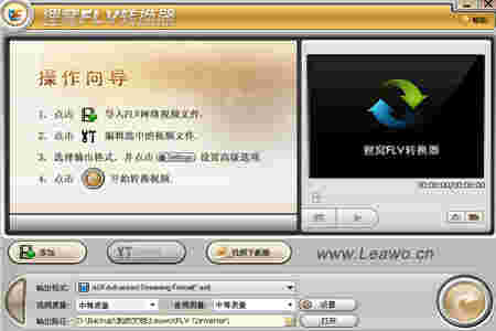 狸窝FLV视频转换器是一款专业的flv视频格式转换的工具软件,支持flv与如AVI、mp4、AAC、wav等各类音视频文件之间的互相转换。十分方便快捷,界面简约,极易上手,是一款不可多得的利器。