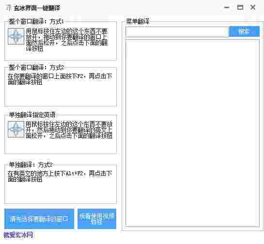 玄冰界面一键翻译是一款专业的语言翻译的工具软件,支持窗口翻译、菜单翻译、搜索翻译等多种翻译模式。十分方便快捷,界面简约,布局直观清晰,操作简单,极易上手,是一款不可多得的利器。