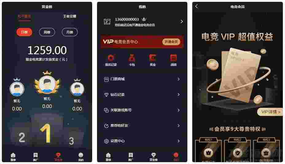 游戏报名、名次奖励、门票商城、玩家秀动态、会员VIP、角色关联、代理推广等
