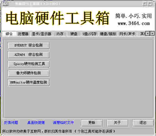 本软件比常用的测试软件更加专业更加全面,是电脑新手和diy爱好者的必备工具,后期将继续集成更多更好的绿色硬件工具。