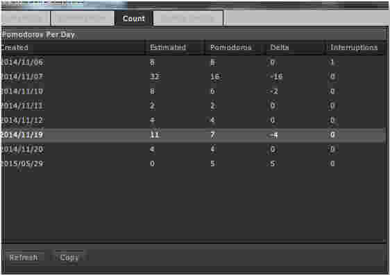 统计功能,可提供以天和周为单位的番茄时间统计:包括完成数、打断次数等。