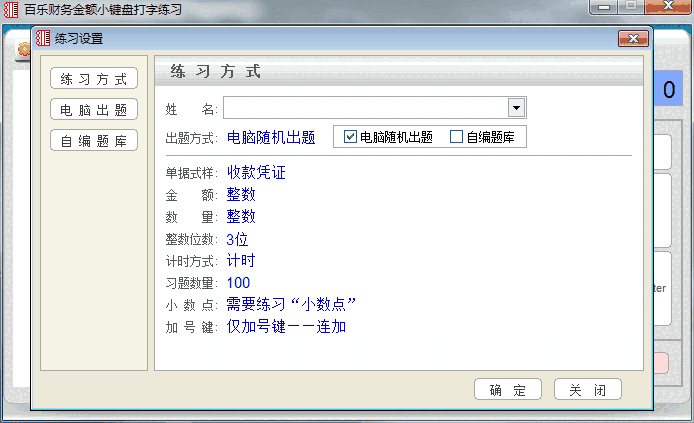 电脑出题选项,可以在此处修改单据式样、金额、整数位数等练习所需要的基本选项,让练习的方向更加多面话~
