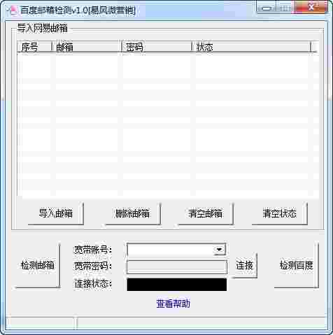 百度邮箱检测是一款专业的邮箱密码检测的软件工具,软件可以帮助使用者检测邮箱密码的正确与否,检测邮箱是否注册过百度。非常方便快捷,软件界面简约,布局直观清晰。操作简单,容易上手,是一款十分实用的工具。