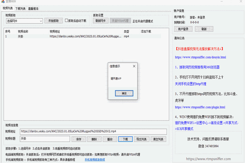 支持rtmp、http(s)-flv、http(s)-m3u8直播源抓取及视频抓取,可用于网页视频抓取、软件视频抓取、app直播抓取