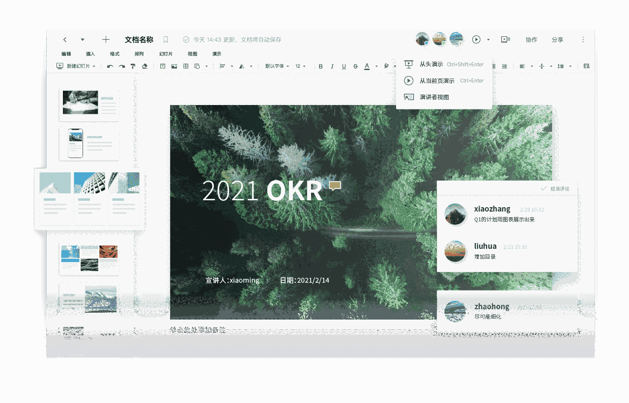 多人多端同步协作编辑,支持任意位置标注评论,自动保存历史版本,支持回溯