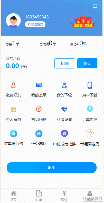 2.4下单端具备邀请功能,邀请下级成功发任务后,返任务利润比例给上级下单员。
