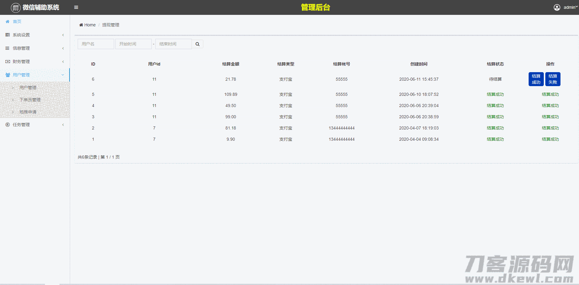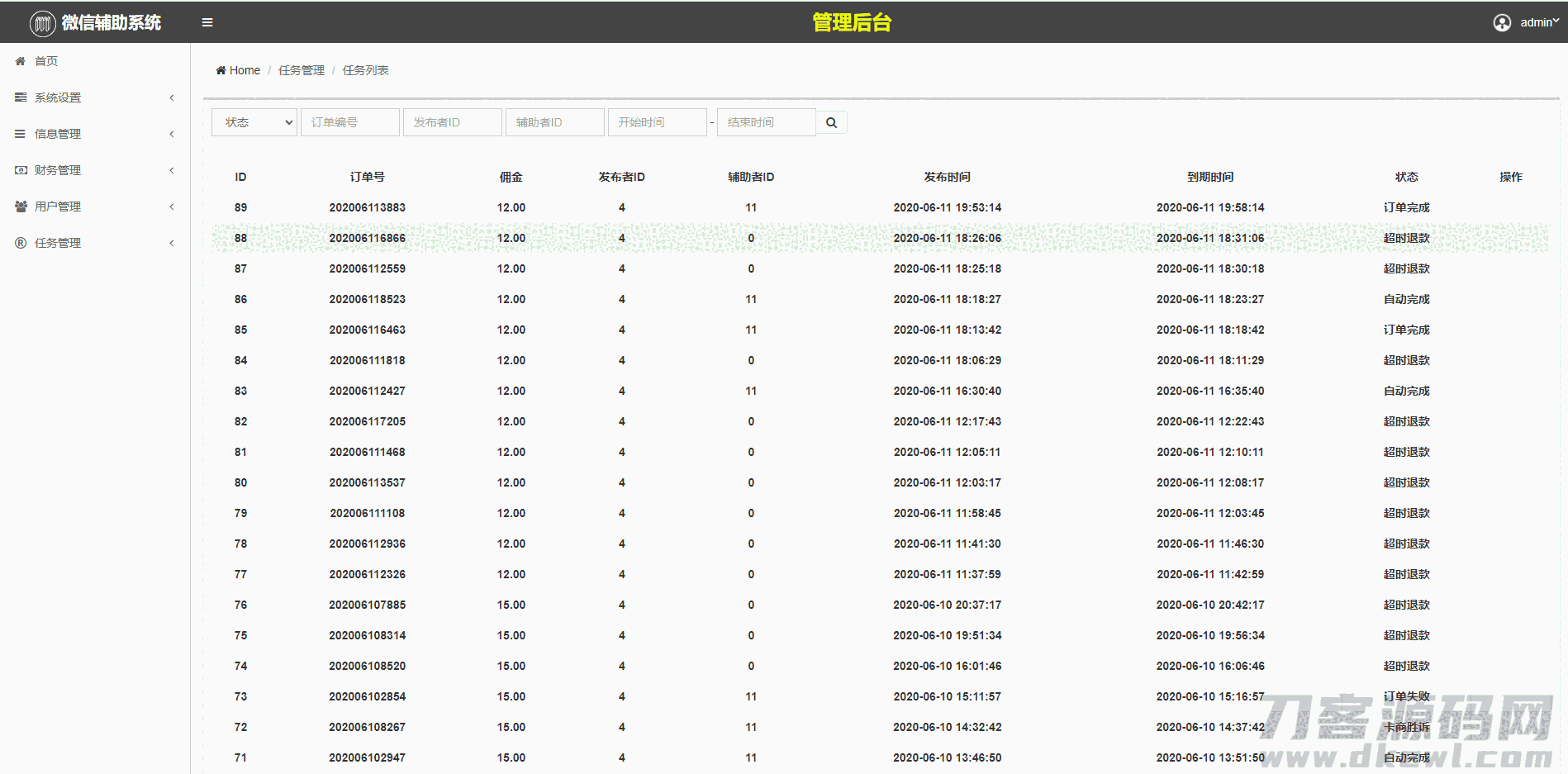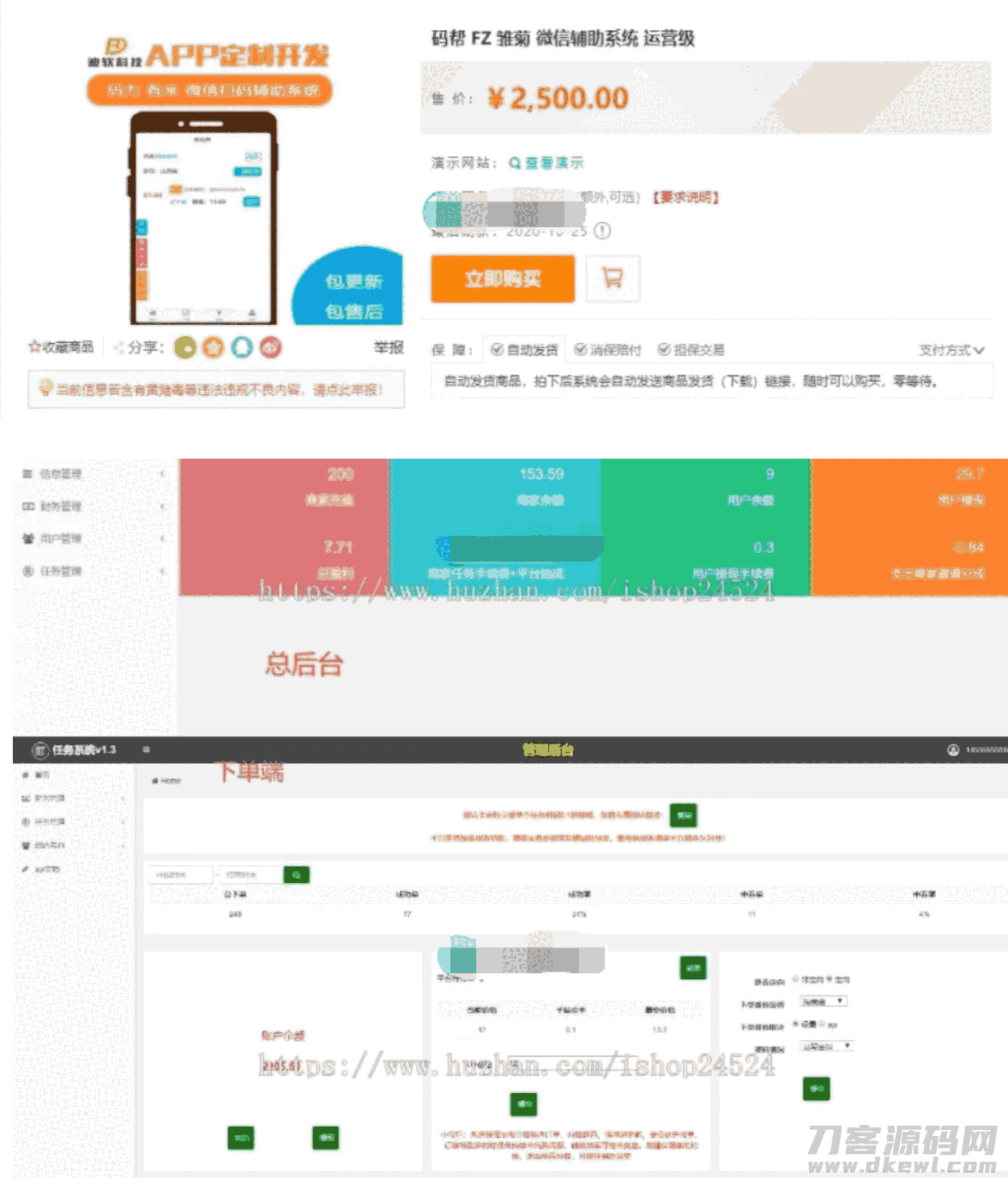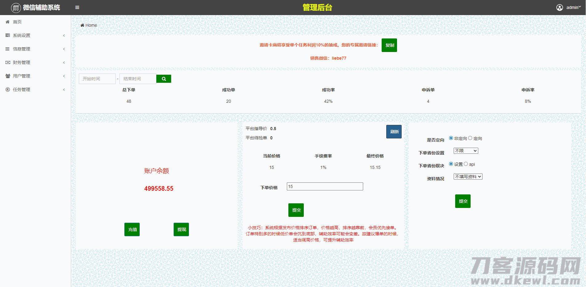 本系统包括:做单端、下单端、总后台三端。结合微信辅助流程,严格定制的一套自动化任务平台。