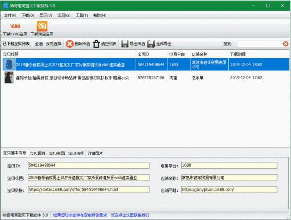 神奇电商宝贝下载软件是一款简易实用的电商软件,支持用户一键下载店铺中的所有信息以及图片的功能,通过神奇电商宝贝下载软件用户可以轻松的下载多个电商平台的图片信息,并且软件操作简单,非常好用。有喜欢的小伙伴快来下载吧!