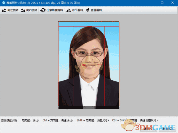 2. 您可以使用软件的裁剪工具,将照片裁剪为照片规格需要的尺寸,如下图所示: