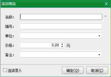 温馨提示:如需连续录入,可勾选左下角“连续录入”,勾选之后点击确定添加一条商品记录之后,本界面不会关闭。