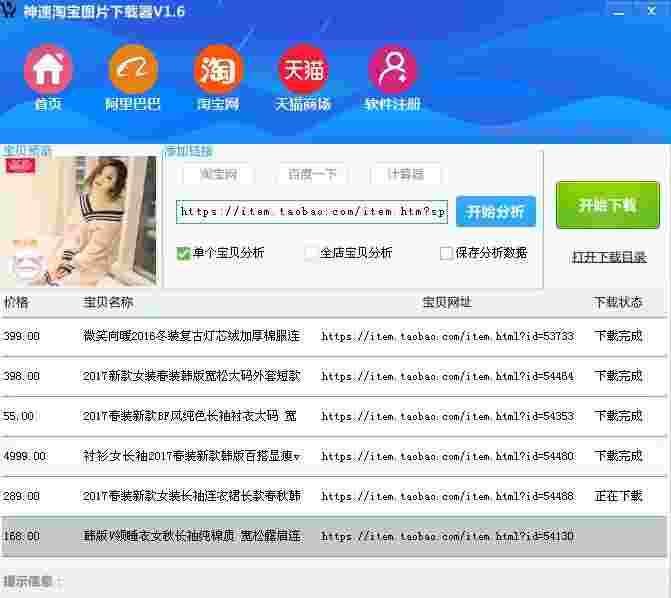 2.支持淘宝网、天猫、阿里巴巴单个产品图片采集下载;