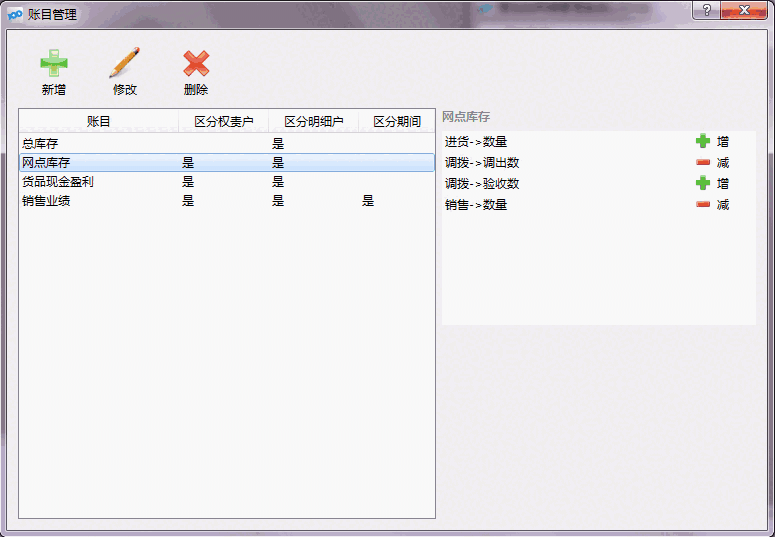明细户——网络管理应用中,通常设计为物品或服务项目等等。单机账可灵活应用。单据中各账值的明细,按明细户分列。