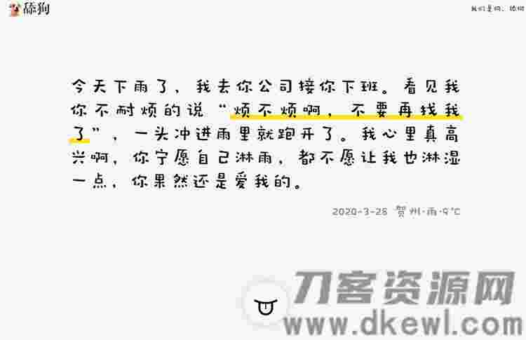 9080免费资源分享,PHP源码、网站源码、游戏源码、模板插件、软件工具、网络教程、为中国站长提供一站式源码下载 » 简约自适应舔狗日记源码美化升级版