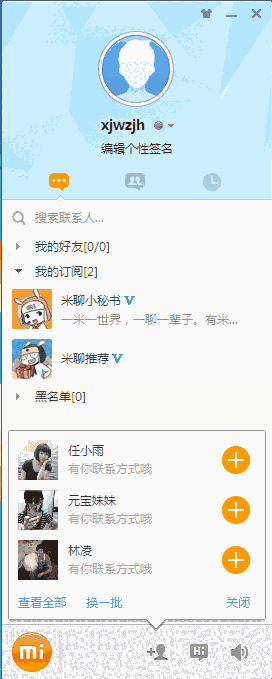 米聊pc版是一款专业的免费沟通的软件工具,软件支持多标签聊天界面、多终端聊天记录同步、群聊建立等等功能。非常方便快捷,软件界面简约,布局直观清晰。操作简单,容易上手,是一款十分实用的工具。