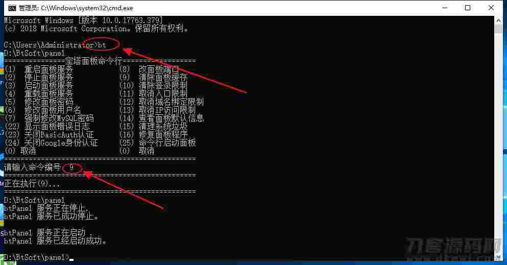 2:(1)Linux进入SSH,输入bt,选择9,清空面板缓存