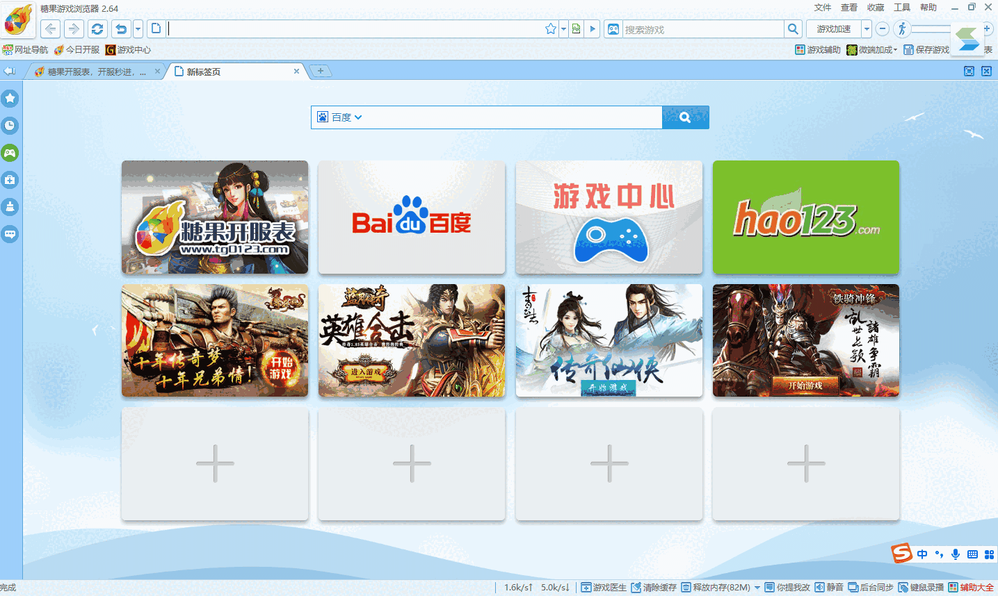 糖果游戏浏览器是一款专业为游戏而设计的浏览器,浏览器为用户提供全面的网页游戏库。针对游戏特别设计的一些功能设计如拦截广告、网页加速、游戏加速等。确保玩家良好的游戏体验。