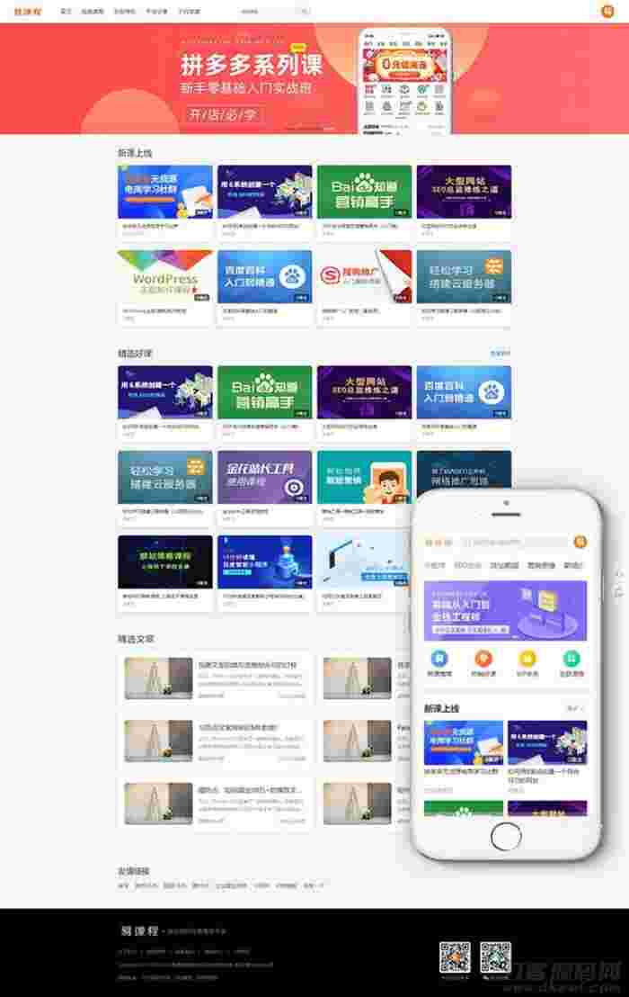 9080免费资源分享,PHP源码、网站源码、游戏源码、模板插件、软件工具、网络教程、为中国站长提供一站式源码下载 » 织梦内核PHP在线教育知识付费课程分销网站源码 带手机端+集成支付功能