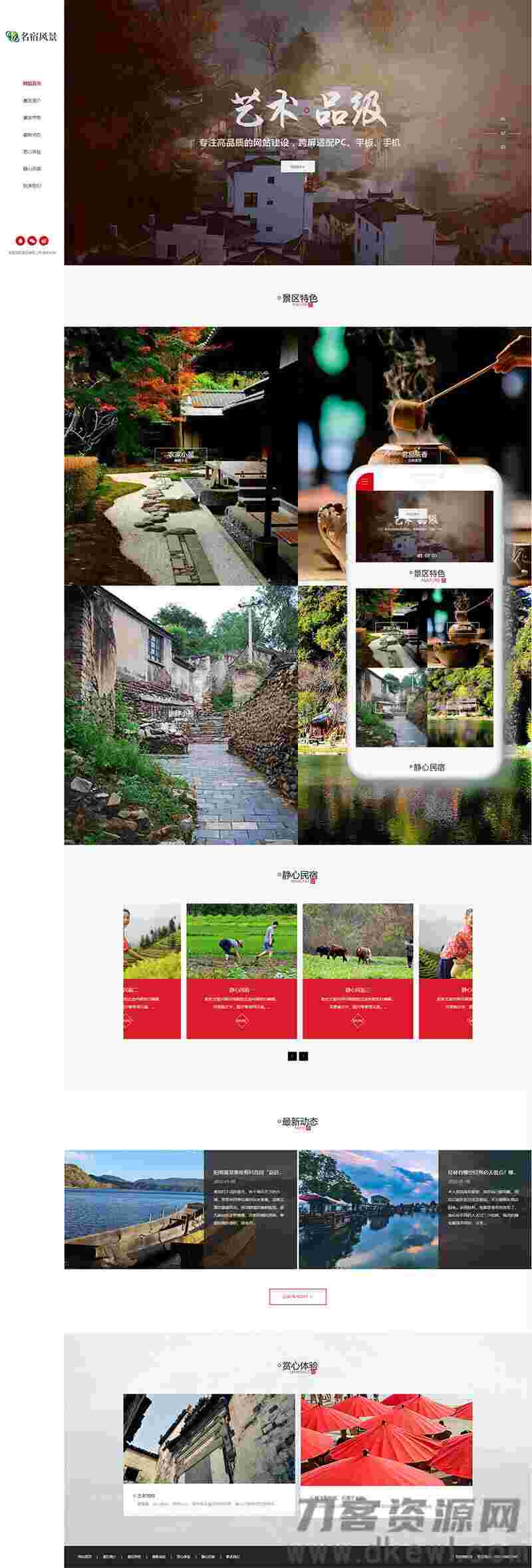 织梦dedecms响应式民宿景区旅游景点网站模板(自适应手机移动端)