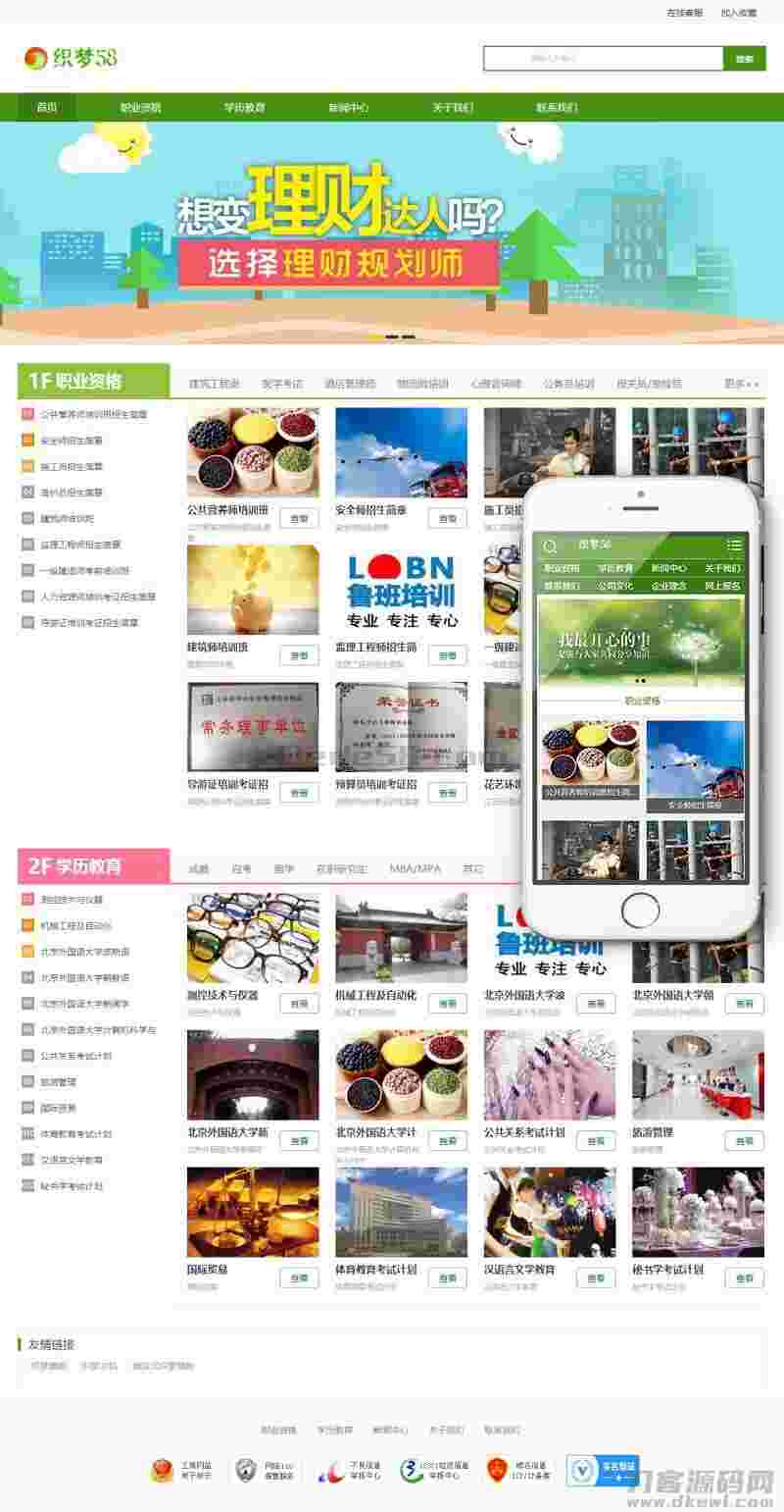 9080免费资源分享,PHP源码、网站源码、游戏源码、模板插件、软件工具、网络教程、为中国站长提供一站式源码下载 » 织梦dedecms绿色风格资格证书学校培训机构网站模板 带手机版