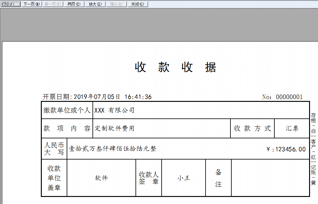 3、填写完成后,您可以点击统一收款收据打印软件右侧的【打印预览】查看