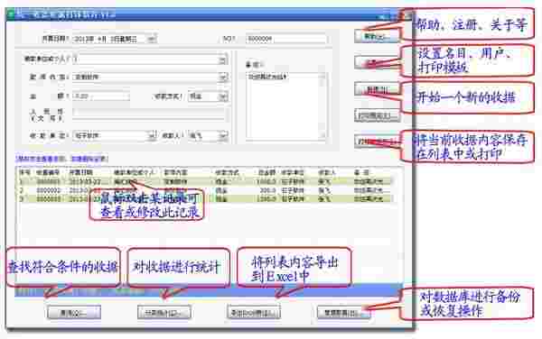 3、可对收据进行保存、修改、删除、查询统计等管理操作