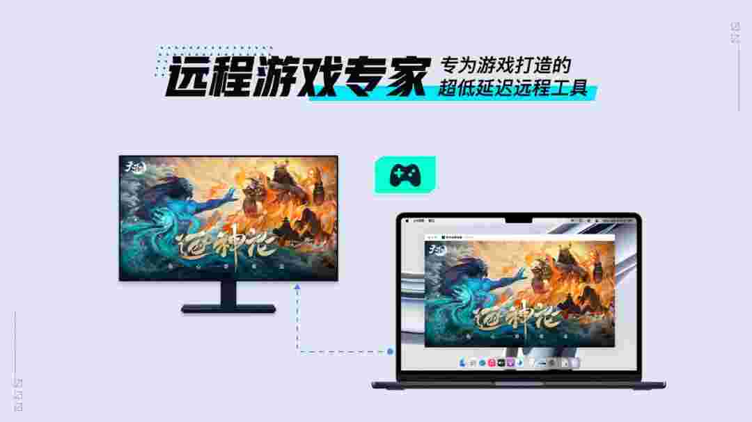支持手机\平板\Mac\游戏掌机远控电脑PC,凭借技术升级,高速专网直连,实现超低延迟远程体验,如本地操作般流畅,远程玩游戏、远控MuMu模拟器、远程移动办公、远程协助、管理电脑不再受限。