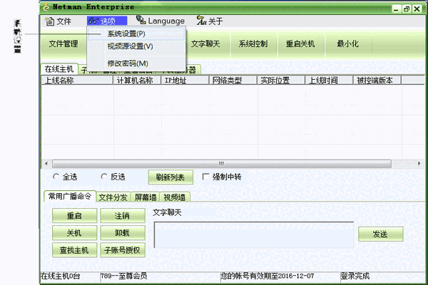 发送广播:同时向多台指定电脑发送文字信息。具有信息发布范围广,传播迅速的特点。