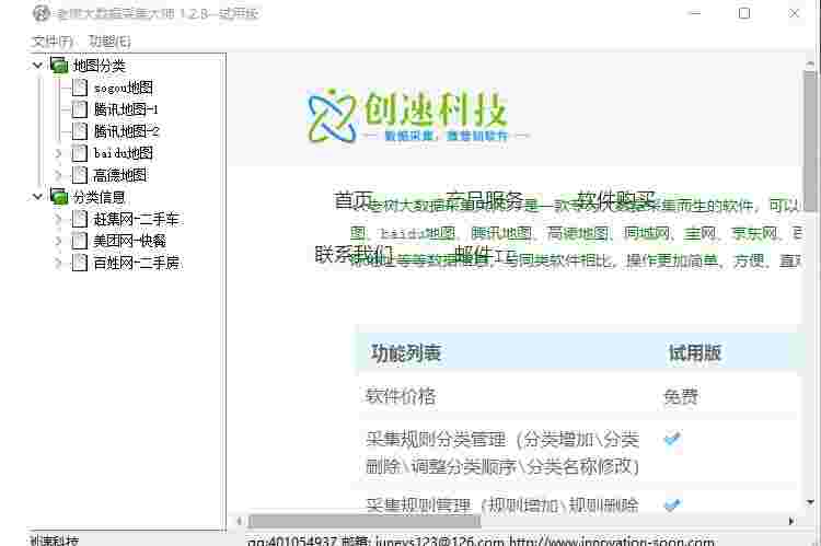 支持采集规则设置,软件提供几种免费的规则可以直接使用