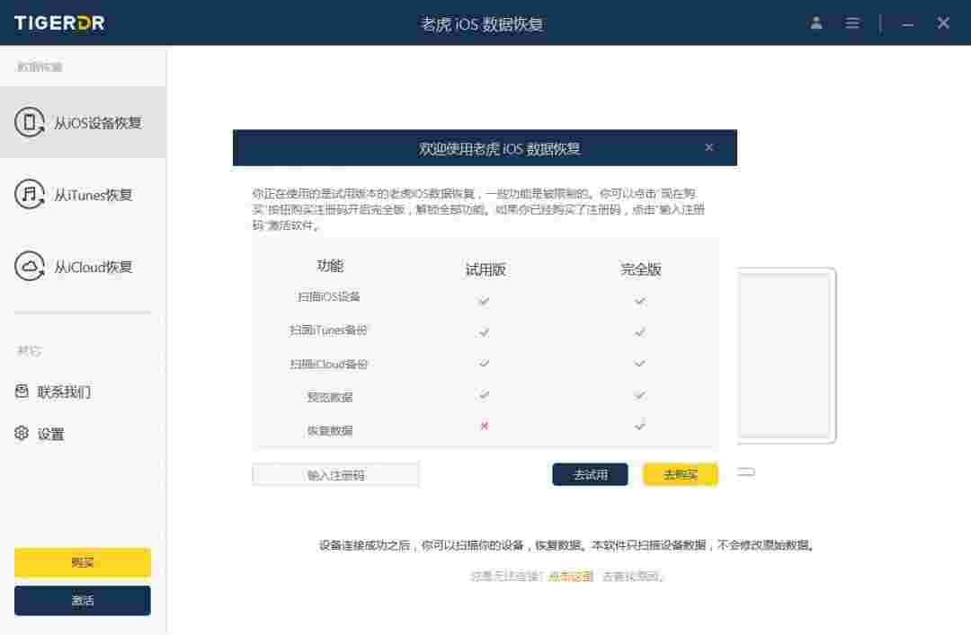老虎数据恢复Mac版是一款专为Mac OS用户设计的数据恢复软件,软件操作简单易上手,使用起来非常方便,支持多种数据类型的恢复,包括短信、通讯录、通话记录、微信聊天记录、照片、视频等功能,配备了iOS系统的一键修复功能,可以解决设备问题,适用于各种数据类型的恢复,感兴趣的朋友快来下载使用吧!