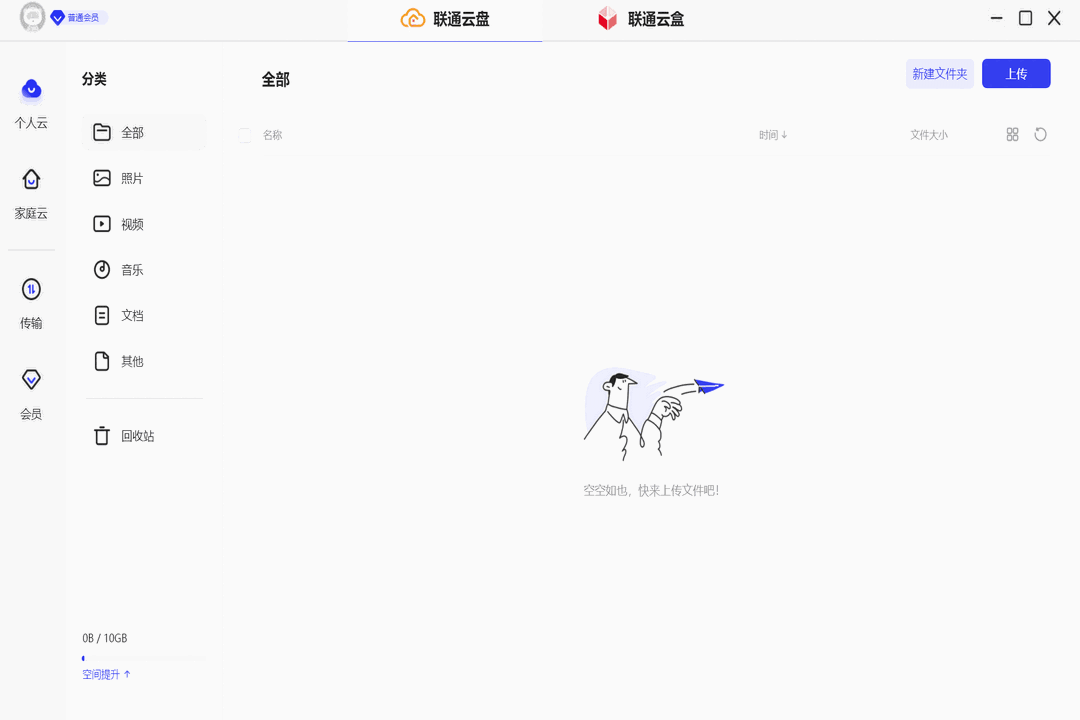 联通云盘是由中国联通官方推出的云盘工具,提供超大存储空间,上传、下载速度快,内置多种服务功能,用户可以在线一键快速上传各种文件,操作简单方便,并且数据存储安全,不用担心数据丢失,另外开启会员还可享受更多特权功能。