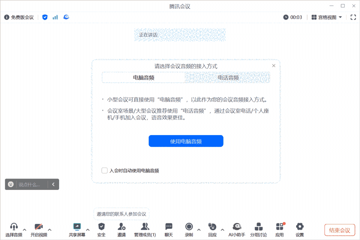 云录制支持识别发言人:多人使用同一设备入会,也能识别区分不同用户的发言内容。