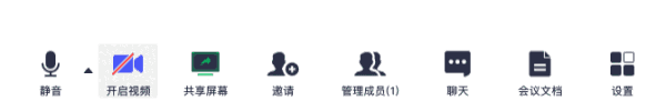 (1) 点击会议面板工具栏上的“共享屏幕”按钮