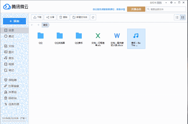 a) 登陆后,微云会创建一个微云网盘同步文件夹,移动文件/文件夹到该文件夹下。