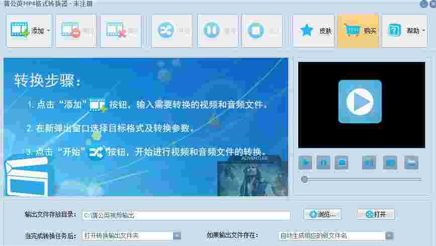 蒲公英MP4格式转换器是一款专业的mp4视频格式转换的工具软件,支持mp4与AVI, RMVB , WMV, MPEG-4等不同视频文件格式之间的互相转换。十分方便快捷,界面简约,布局直观清晰,极易上手,是一款不可多得的利器。