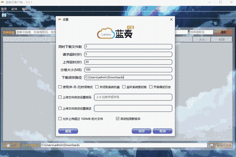 蓝奏云客户端是一款专业的云盘存储的软件工具,软件支持批量上传文件至云盘和批量下载云盘文件,支持各种类型的文件存储和下载。非常方便快捷,软件界面简约,布局直观清晰。操作简单,容易上手,是一款十分实用的工具。