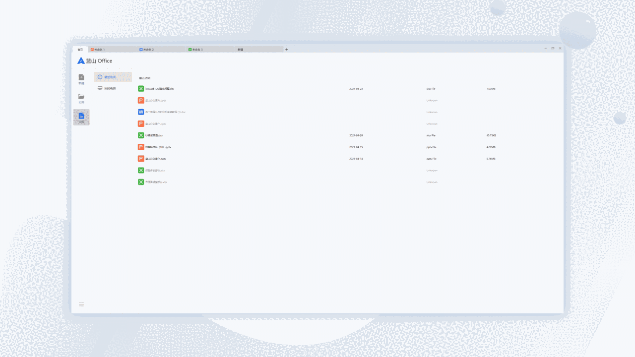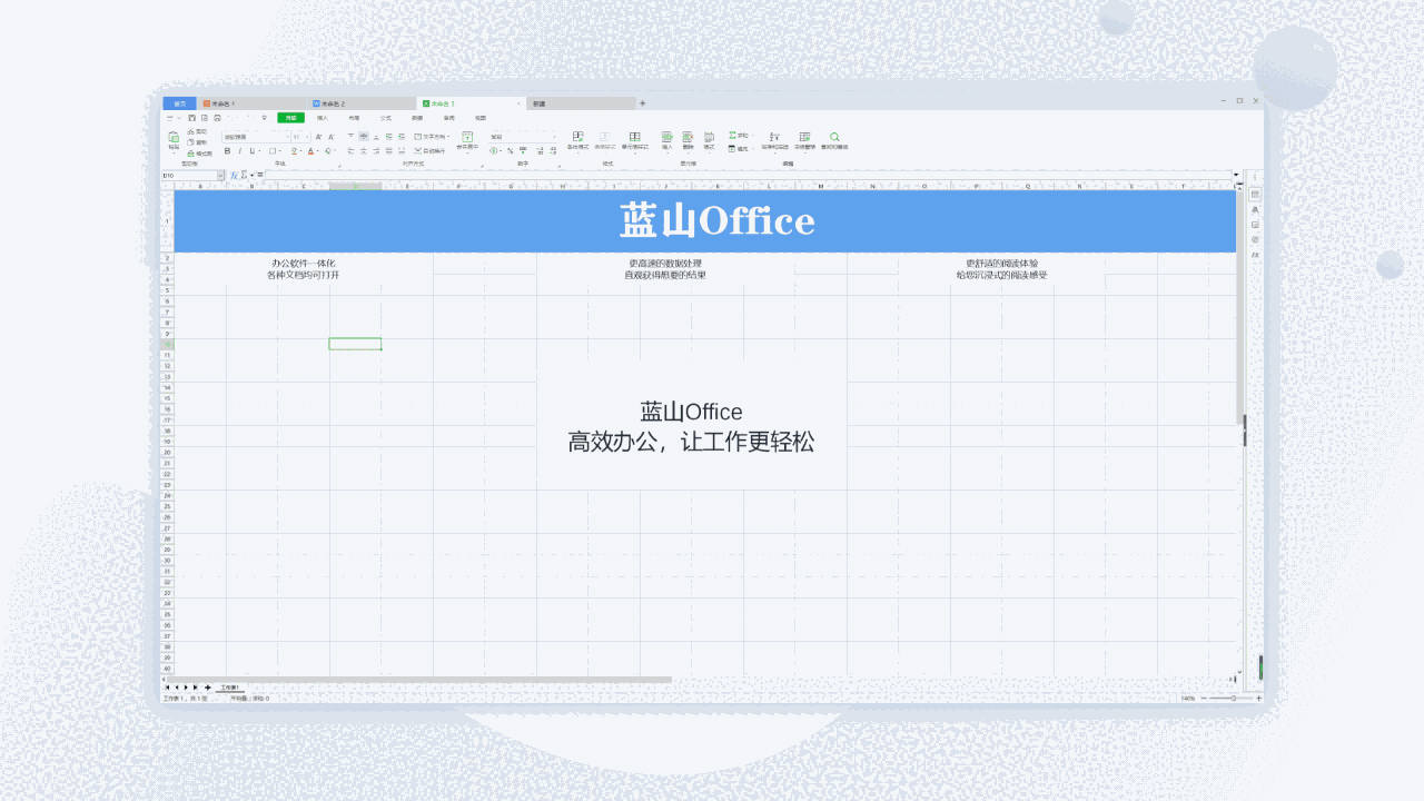 蓝山office是一款专业的商务办公的工具软件。软件支持word、excel、ppt演示文稿以及其它的一些办公软件。相比MS office来说速度会更快,十分方便快捷,界面简约,布局直观清晰,操作简单,极易上手,是一款不可多得的利器。
