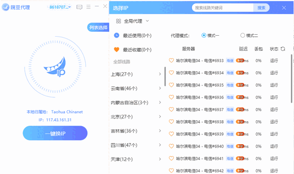 豌豆代理是一款非常实用的网络通信软件,软件功能强大,操作简单易用,支持自动切换IP、自动过滤重复IP以及自动清除cookie等功能,覆盖全国各地海量IP资源,一键秒切换,提供专业的团队24/7小时提供技术支持,为用户提供极速稳定的网络连接体验,满足不同行业用户的需求,有需要的小伙伴赶快下载使用吧!