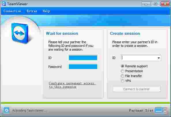 该软件第一次启动在两台计算机上自动生成伙伴 ID。只需要输入你的伙伴的 ID 到TeamViewer,然后就会立即建立起连接。