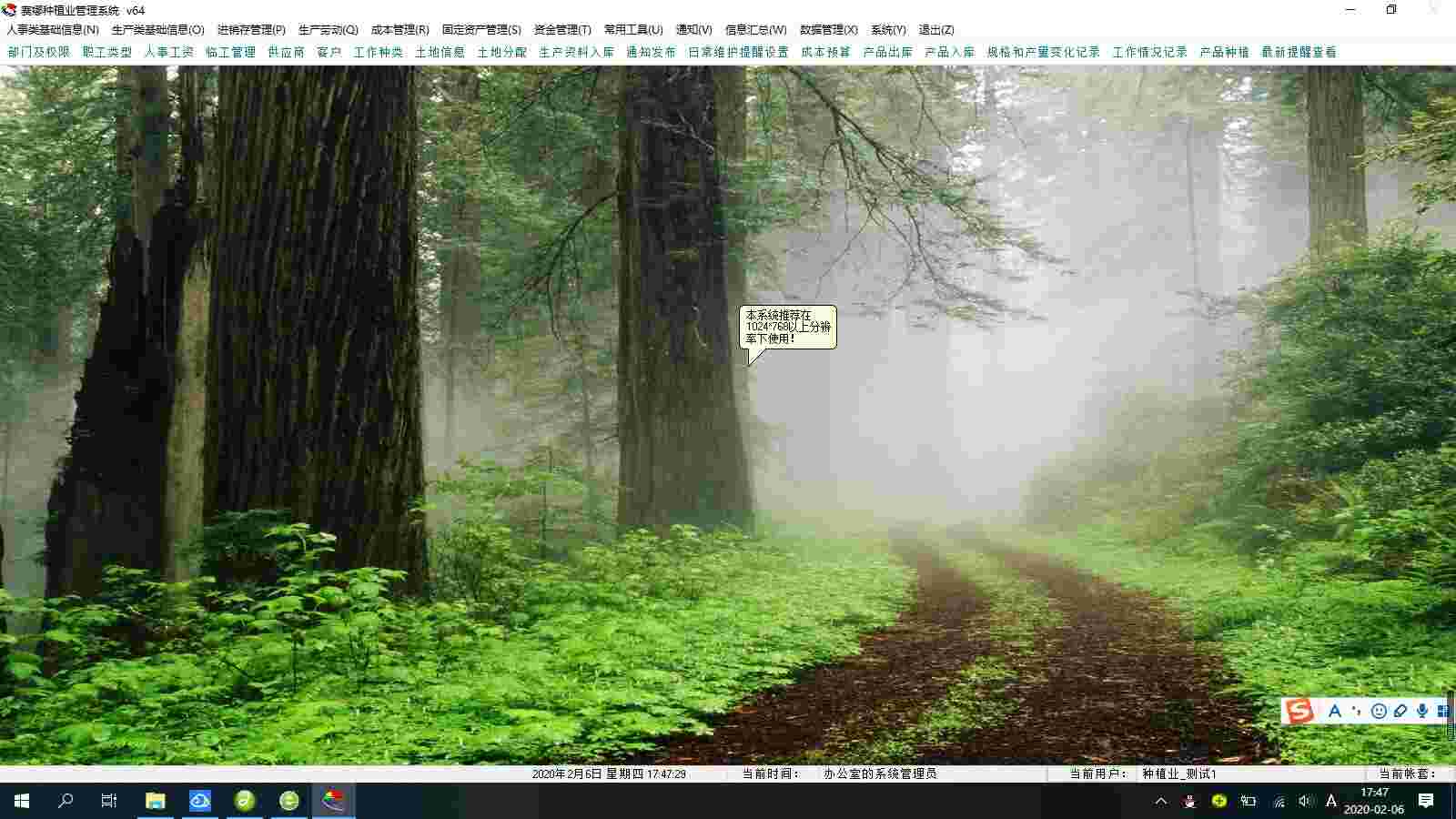 软件功能十分丰富,包括人事管理、资金管理、生产管理、进销存管理、客户管理、生产劳动管理、成本管理、固定资产管理、网络通信、常用工具、数据管理、信息汇总等。目前软件已经升级到了V64版,新版本增加了不少实用的功能,在智能化方面也有长足的进步。这次升级极大地提高了软件的实用性、灵活性和便捷性。