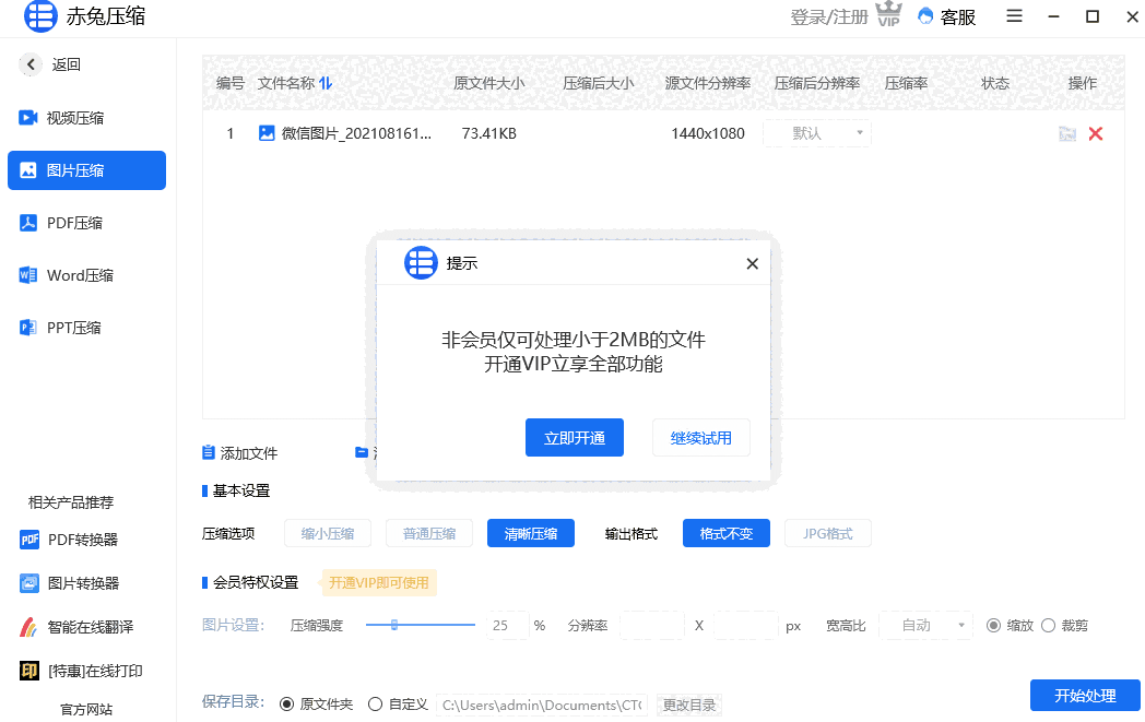 赤兔压缩是一款专业的文件压缩的工具软件,软件支持压缩图片、视频、pdf、ppt、word等不同格式的文件。十分方便快捷,界面简约,布局直观清晰,操作简单,极易上手,是一款不可多得的利器。