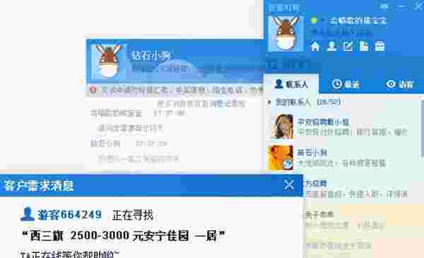 赶集叮咚是一款专业的即时通讯的软件工具,软件支持我的访客查看、快速切换用户账号、快速查找联系人等等功能。非常方便快捷,软件界面简约,布局直观清晰。操作简单,容易上手,是一款十分实用的工具。