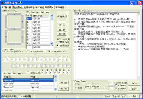 7段、14段、16段三种类型;自带图形定义,也可自定义并能保存自定义方案;自定义位置信息并可保存;可以生成 8位、4位编码,4位编码主要针对一些有