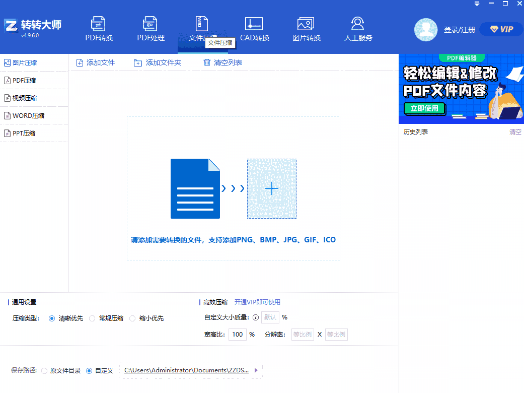 转转大师可以将JPG、PNG、BMP等格式图片进行大小压缩,可支持一键批量转换。软件界面简洁美观、操作简单、是您办公时处理图片大小压缩不可缺少的办公利器。