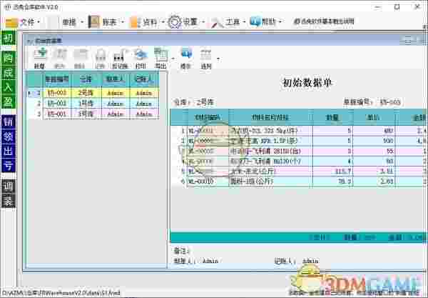 新建账套并登录后,账套文件里面尚无数据;在使用前,需要设置3个基本信息:物料、仓库、初始库存量;