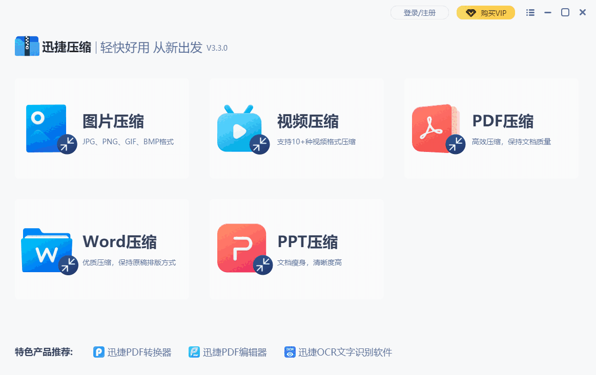 迅捷压缩是一款专业的解压缩文件的工具软件,软件支持压缩图片、视频、pdf、word、ppt等不同格式的文件。十分方便快捷,界面简约,布局直观清晰,操作简单,极易上手,是一款不可多得的利器,支持图像压缩、视频压缩和PDF压缩。您可以使用OCR将压缩的PDF转换为可编辑的文本。普通压缩可以保持文件质量,高级压缩可以设置压缩文件的定义,支持客服操作便捷,具有优秀的压缩处理能力,还可以调整分辨率,对该软件感兴趣的小伙伴快来下载体验吧!