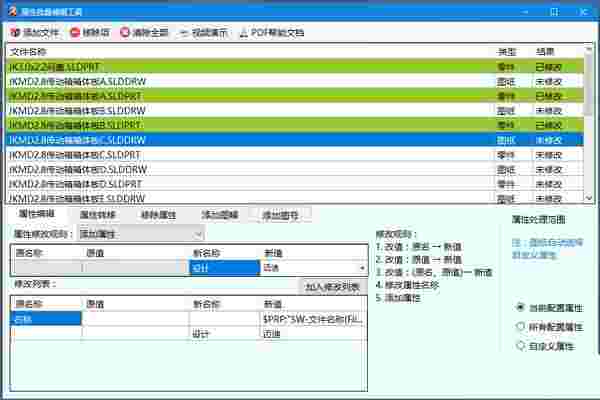 迈迪属性批量编辑工具是一款专业的工程图的属性修改工具软件。使用者可以通过软件对工程图进行批量添加、修改属性以及添加图号功能。软件界面的功能布局很直观明了,需要什么功能时都可以快速找到,使用方法也非常简单,只需几步即可完成属性的修改操作。