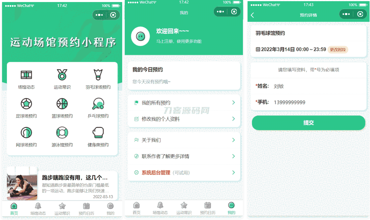 9080免费资源分享,PHP源码、网站源码、游戏源码、模板插件、软件工具、网络教程、为中国站长提供一站式源码下载 » 运动场馆预约小程序源码