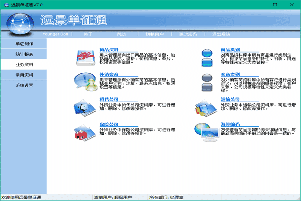 远景外贸单证通是一款强大的软件,它包含了许多我们生活中需要用到的功能。这款软件拥有简洁的界面,但是它的功能很强大。我们无论是在日常生活中还是在办公的过程当中,都可以使用这款软件作为我们的工具。