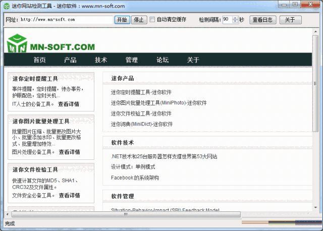 迷你网站检测工具主要是以浏览器启动您的网页,并将网页显示在软件主界面