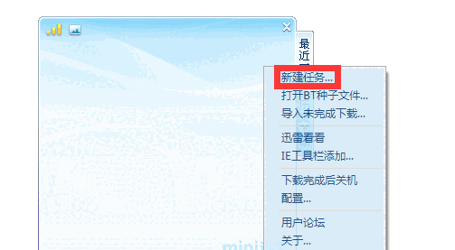 在浏览器上点下载文件就可以了,不过很多时候反应都是很慢的,有时候根本没反应,这种情况下就只有你在迷你迅雷上点击新建任务然后把你要下载的那个文件的链接地址复制进去!
